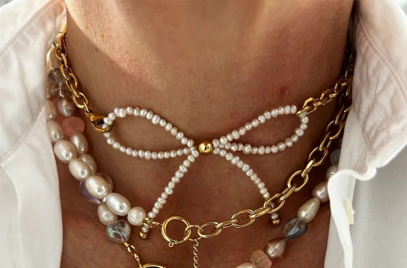 Elegant choker bow necklace crafted from premium stainless steel. This waterproof, high-quality piece combines timeless sophistication with everyday durability. The refined bow design makes it perfect for layering or wearing solo—an effortless addition to any jewelry collection.