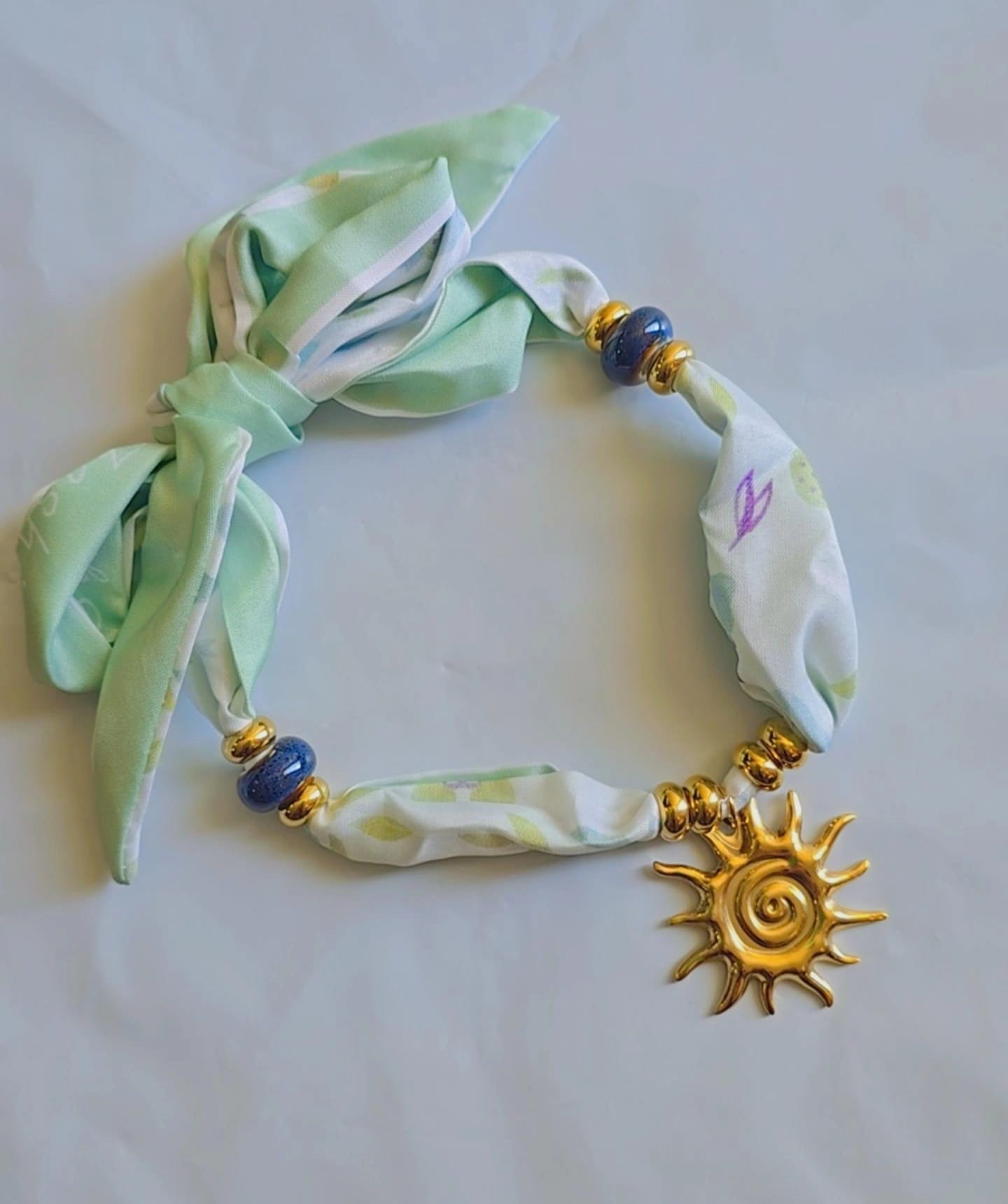 Elevate your everyday style with this charming bandana sun necklace. Featuring a delicate bow pendant with intricate bandana detailing, this piece combines playful elegance with timeless appeal. Perfect as a standalone statement or layered with other favorites, it's an ideal gift for those who appreciate refined accessories. Crafted for versatility, it pairs effortlessly with casual and dressed-up looks alike.