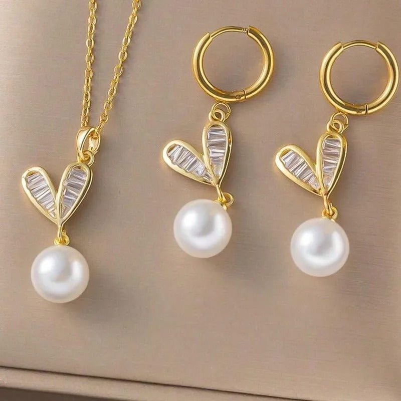 Casual Elegant Pearl+Heart Set
