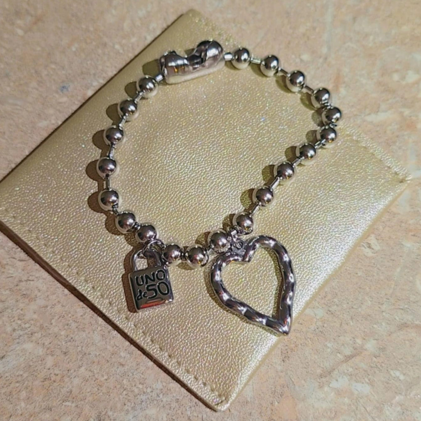 Unlock passion and mystery with the UN-Lock Heart Bracelet. This bold accessory features a unique heart-shaped lock design, symbolizing strength and fearless love. Crafted to stand out, it’s perfect for those who dare to express their true feelings with confidence and edge. Wear it as a statement of your individuality and unlock new possibilities in style.
